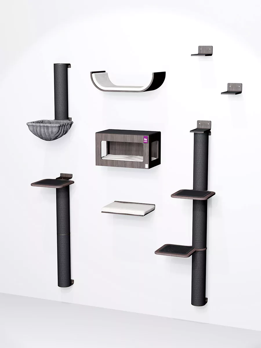 De grootste en coolste set uit ons assortiment! Met deze gecombineerde set heb je vrijwel onbeperkte mogelijkheden om je dromen waar te maken. Klinkt veelbelovend, en dat is niet zonder reden. Deze kattenmuur biedt eindeloze klimmogelijkheden. Je katten kunnen elk punt van deze set bereiken, niet alleen via de 10 Horizon-palen, maar ook via de Climb 1250 sisalpalen. Problemen met scherpe nagels? Geen probleem! Deze set biedt zowel horizontale als verticale krabopties. Klimmen en krabben is vermoeiend, daarom biedt deze gecombineerde set meerdere comfortabele slaapplekken. Ontworpen door kattenexperts met het comfort van je kat in gedachten, perfect voor Rebellen die graag klimmen, krabben en ontspannen in stijl!