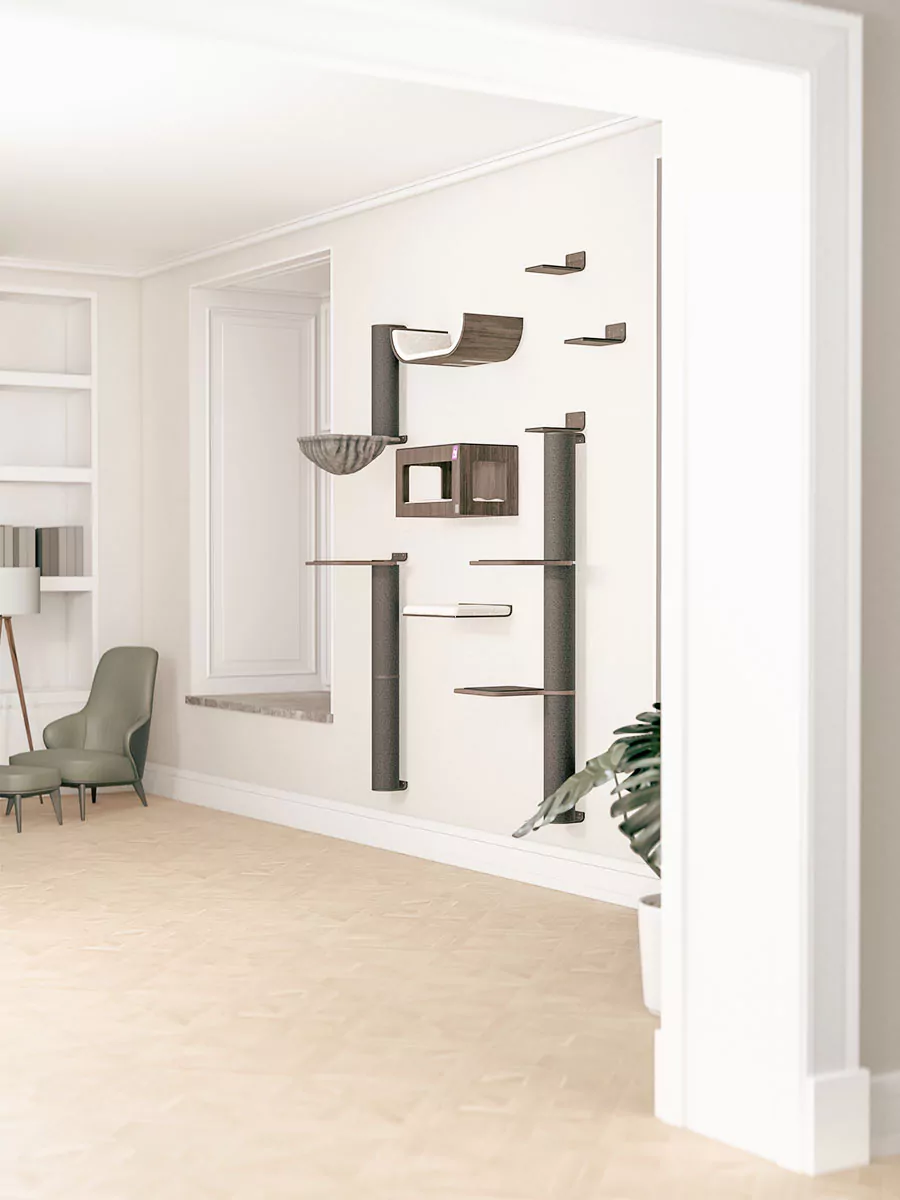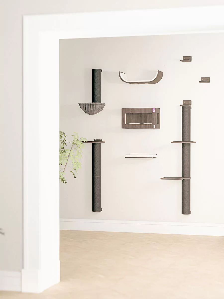 - Houd rekening met de grootte en klimcapaciteit van je kat(ten). Kleine katten of katten die moeite hebben met klimmen? Hang de onderdelen dichterbij. Grote en energieke katten? Overweeg de onderdelen verder uit elkaar te hangen.