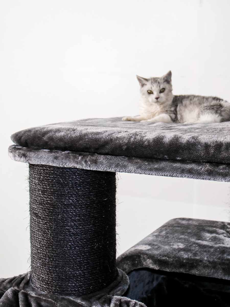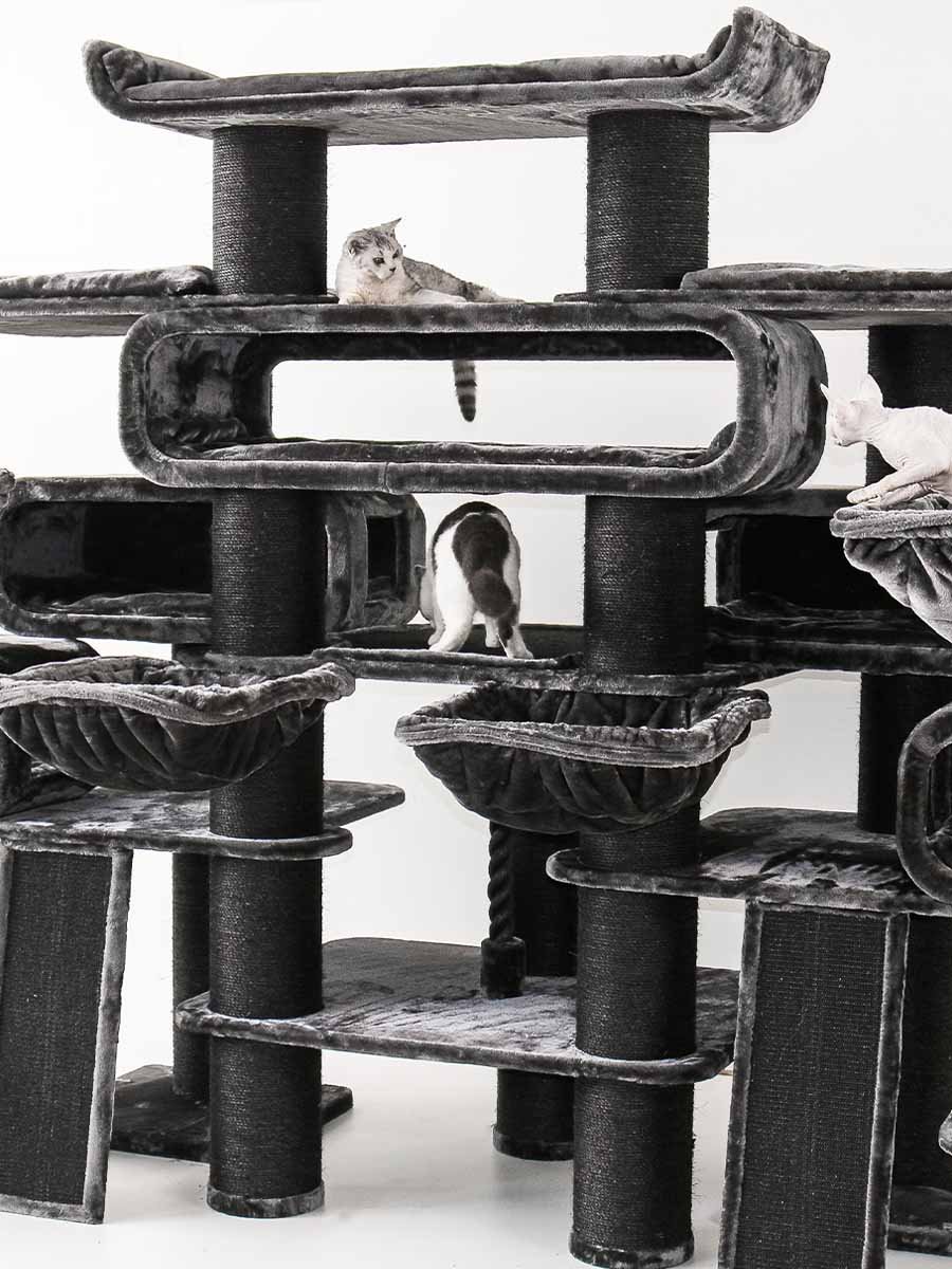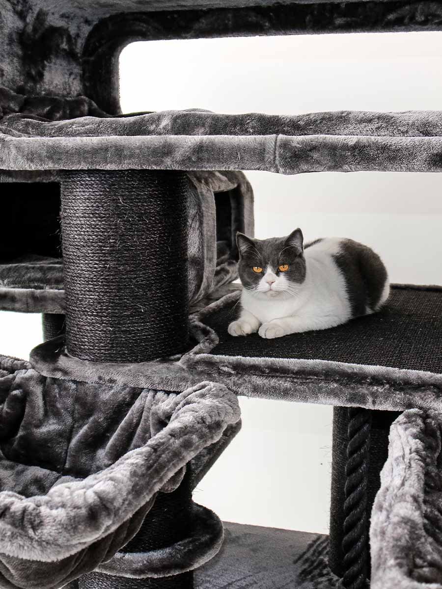 • Een grote krabpaal met tal van klim-, slaap- en speelplekken