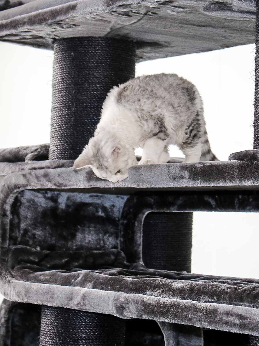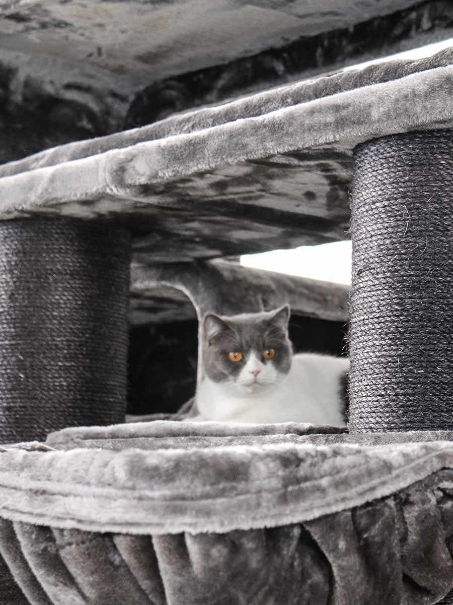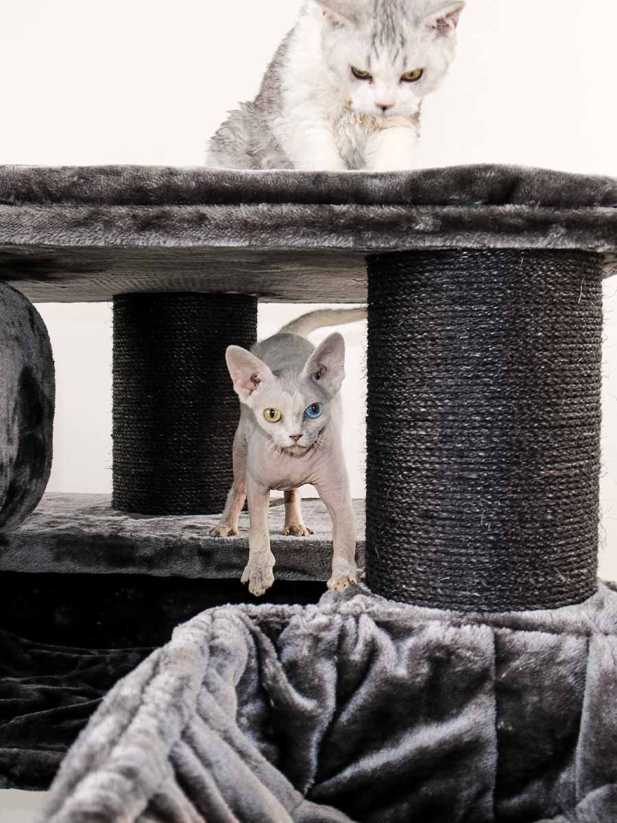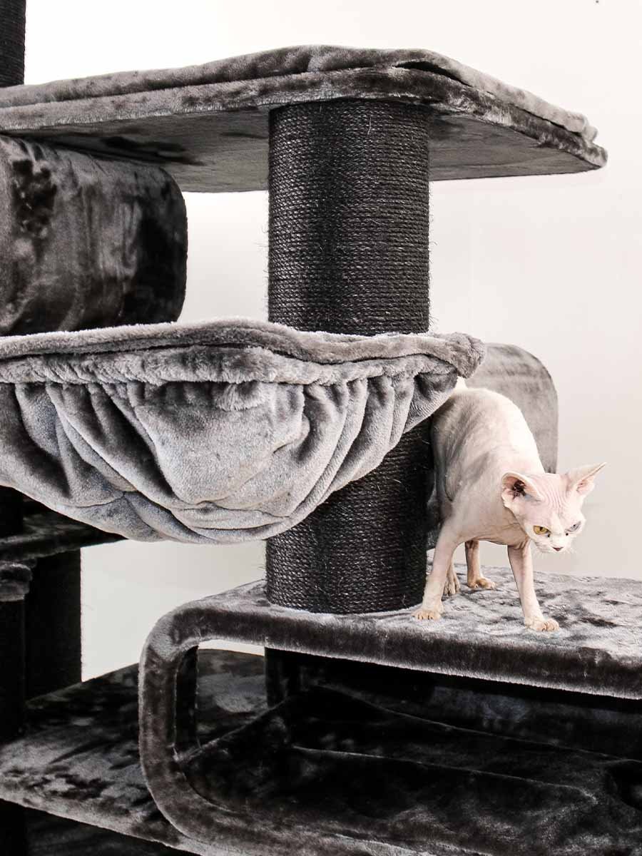 • Een grote krabpaal met tal van klim-, slaap- en speelplekken