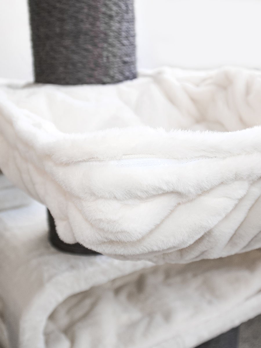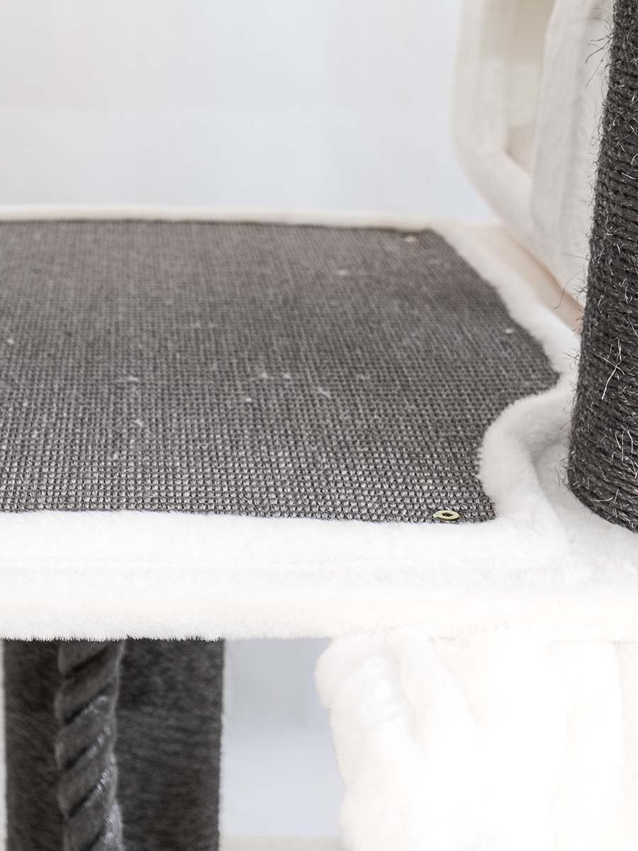 - Kleuren: crèmewit pluche met grijs sisal