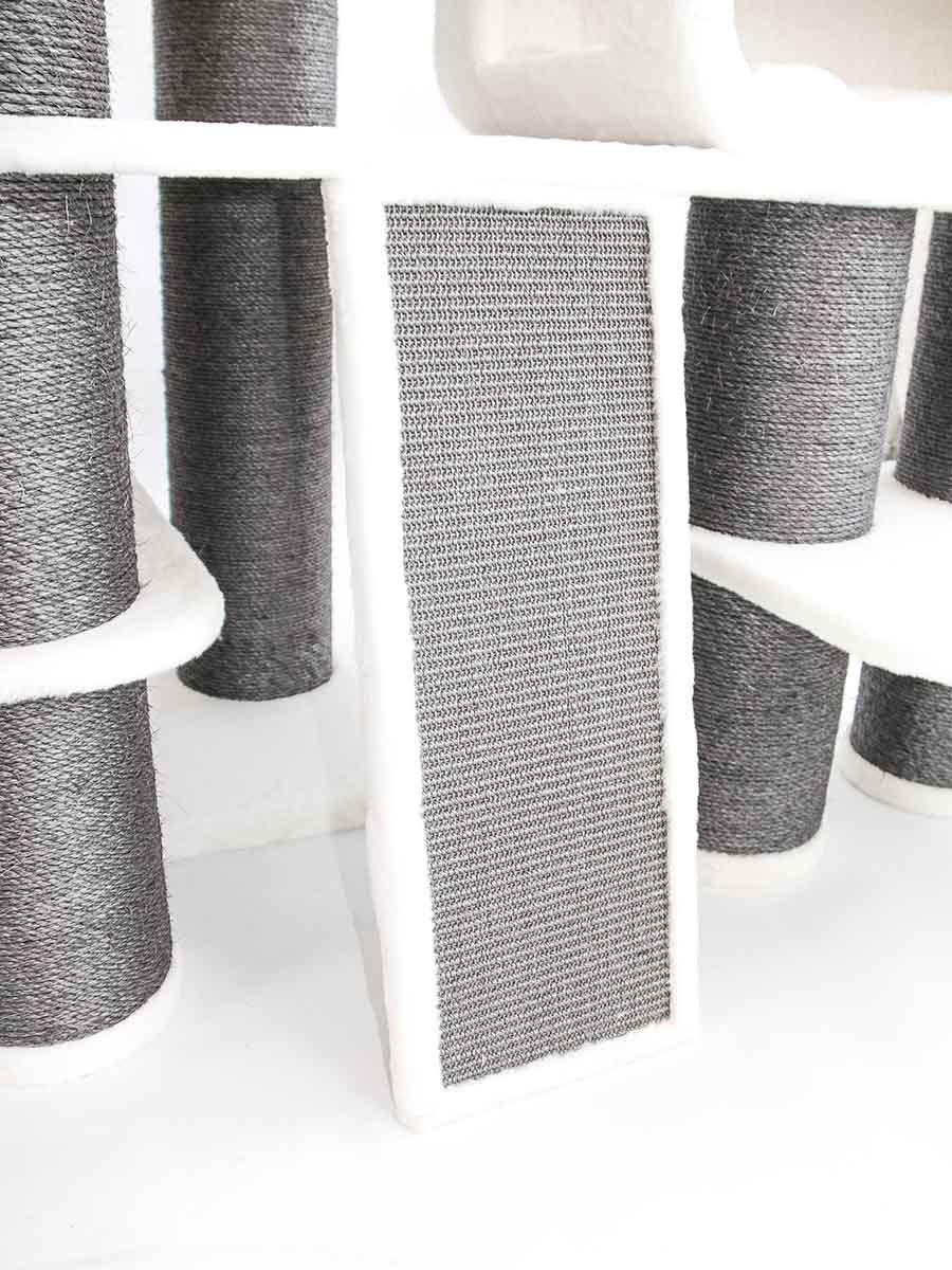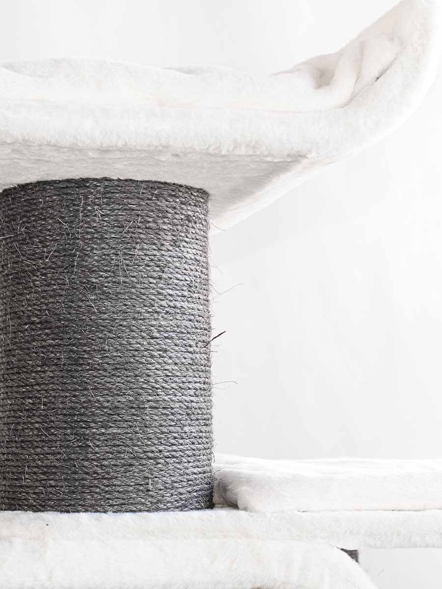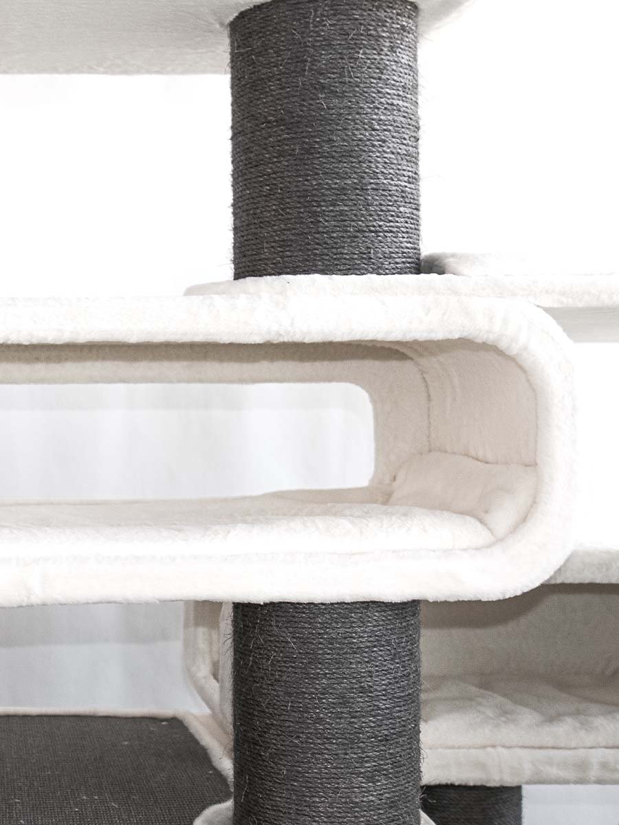 - Een grote krabpaal met tal van klim-, slaap- en speelgebieden